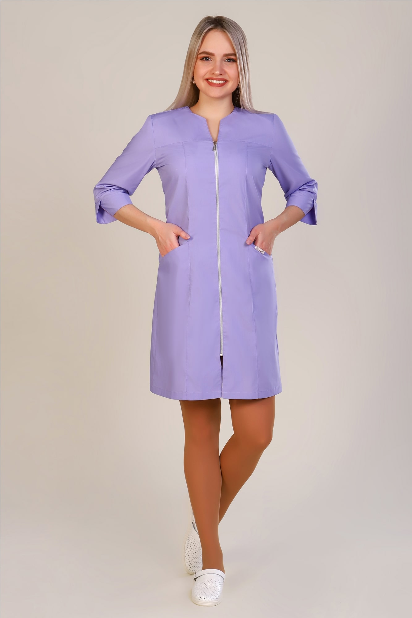 Халат полуприлегающего силуэта с центральной бортовой застежкой на тесьму «молнию».