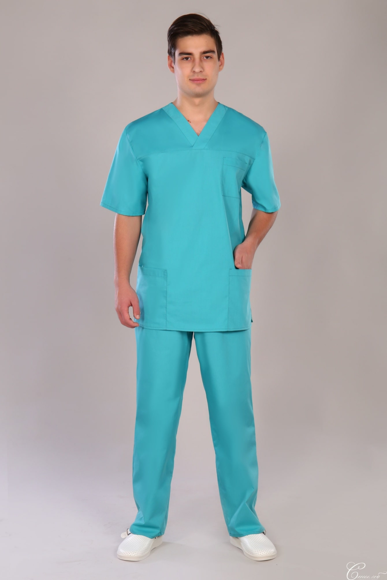 Костюм мужской хирургический выполнен из смесовой ткани Тиси.
