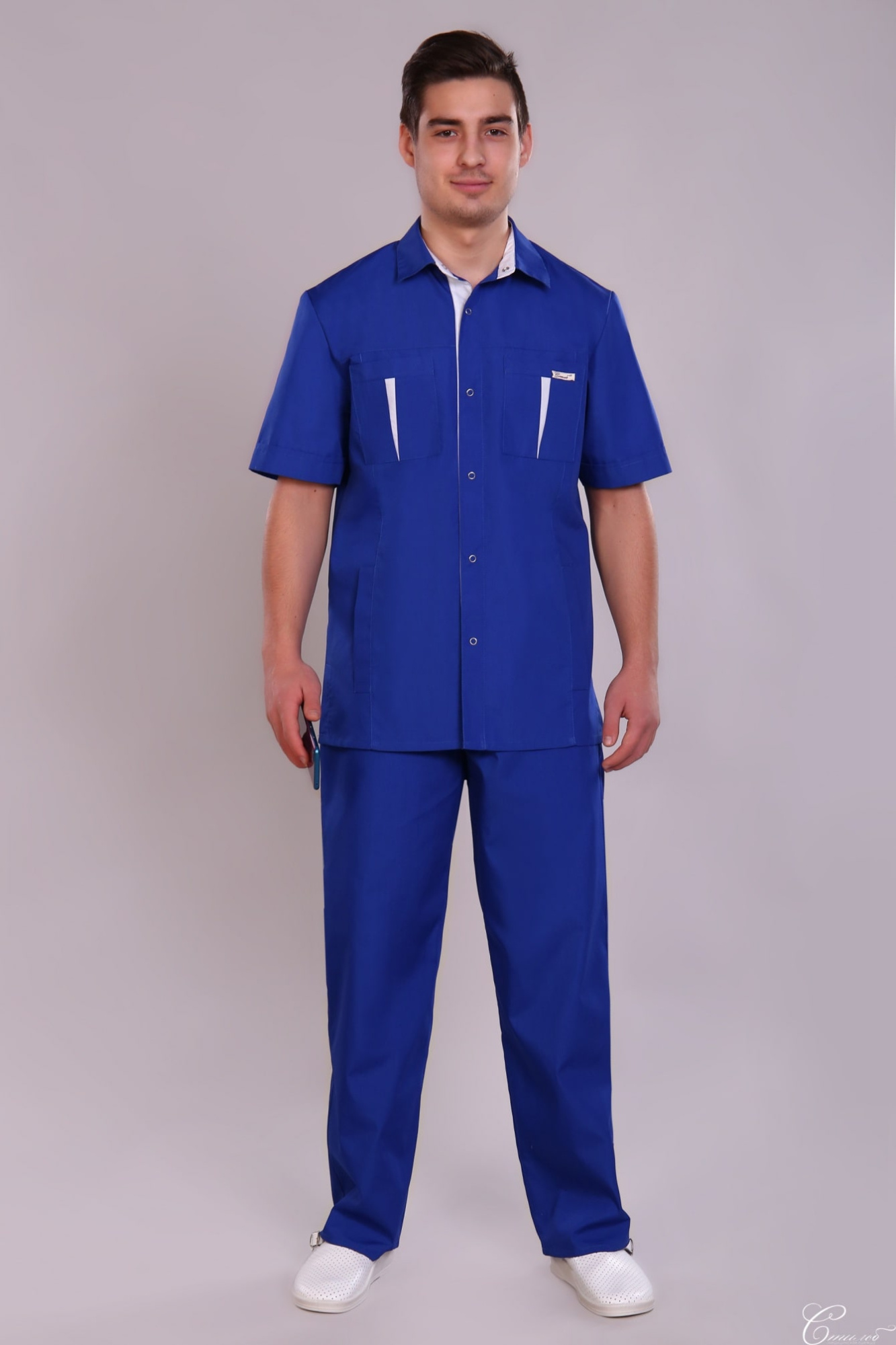 Костюм мужской медицинский из смесовых тканей состоит из куртки и брюк.