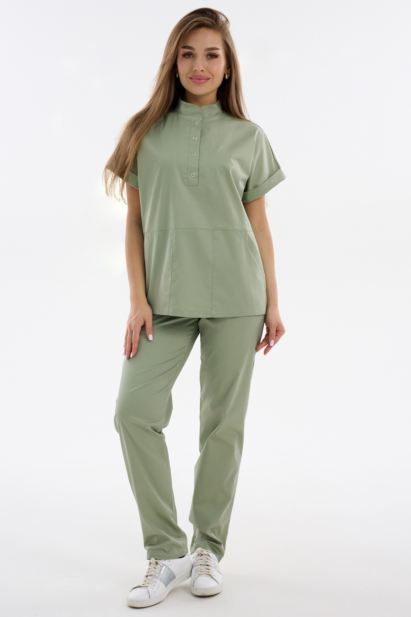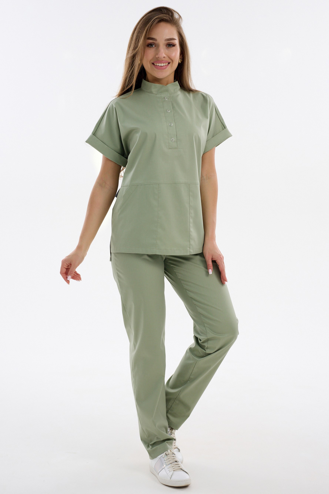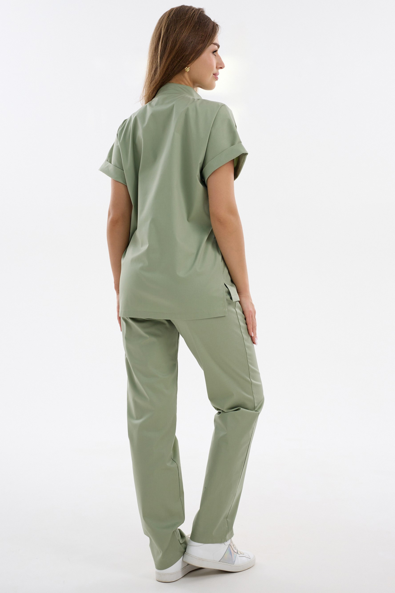 Костюм медицинский женский из смесовой ткани CVC стрейч. Костюм состоит из куртки и брюк.