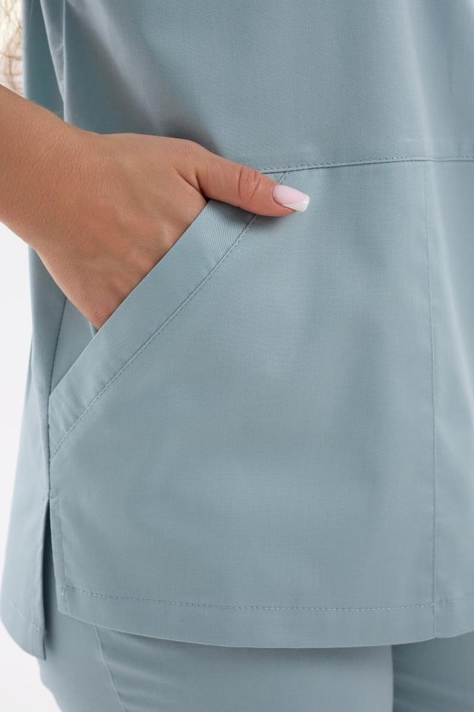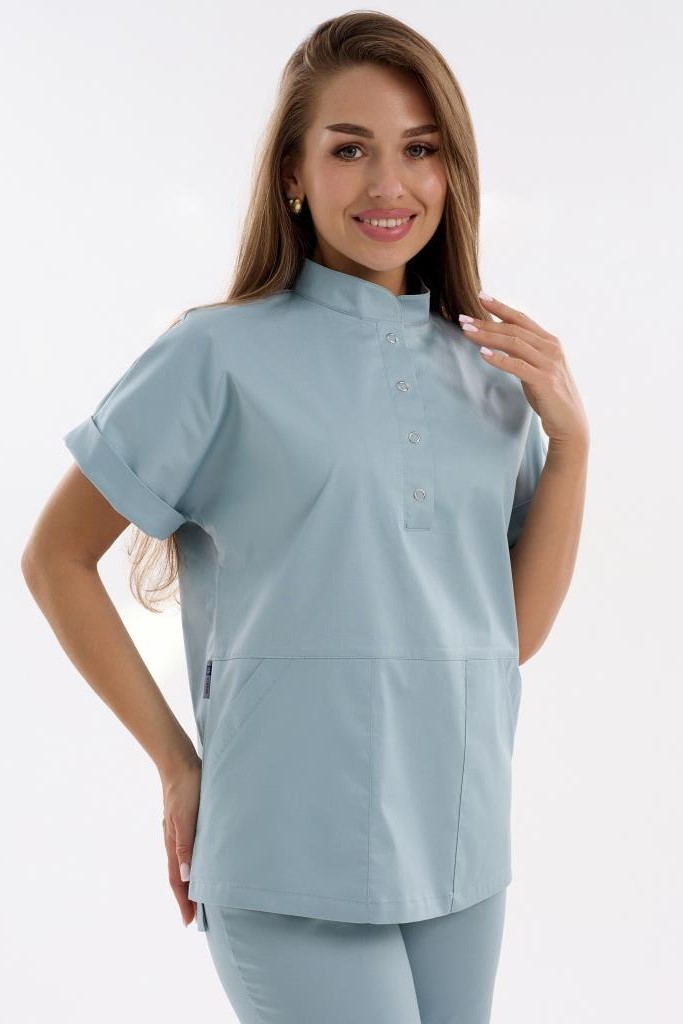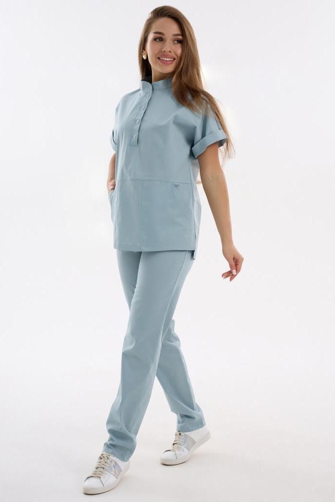 Костюм медицинский женский из смесовой ткани CVC стрейч. Костюм состоит из куртки и брюк.