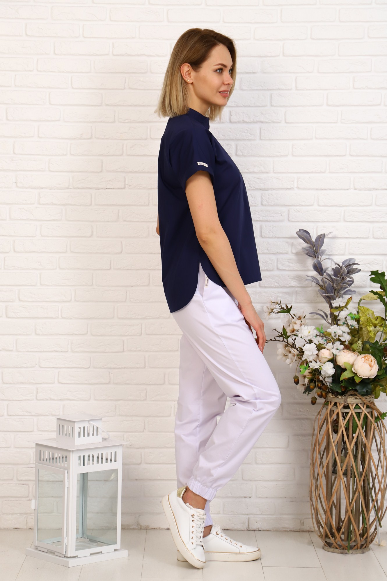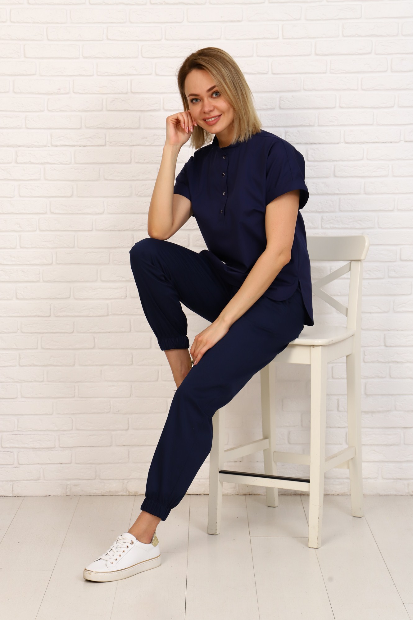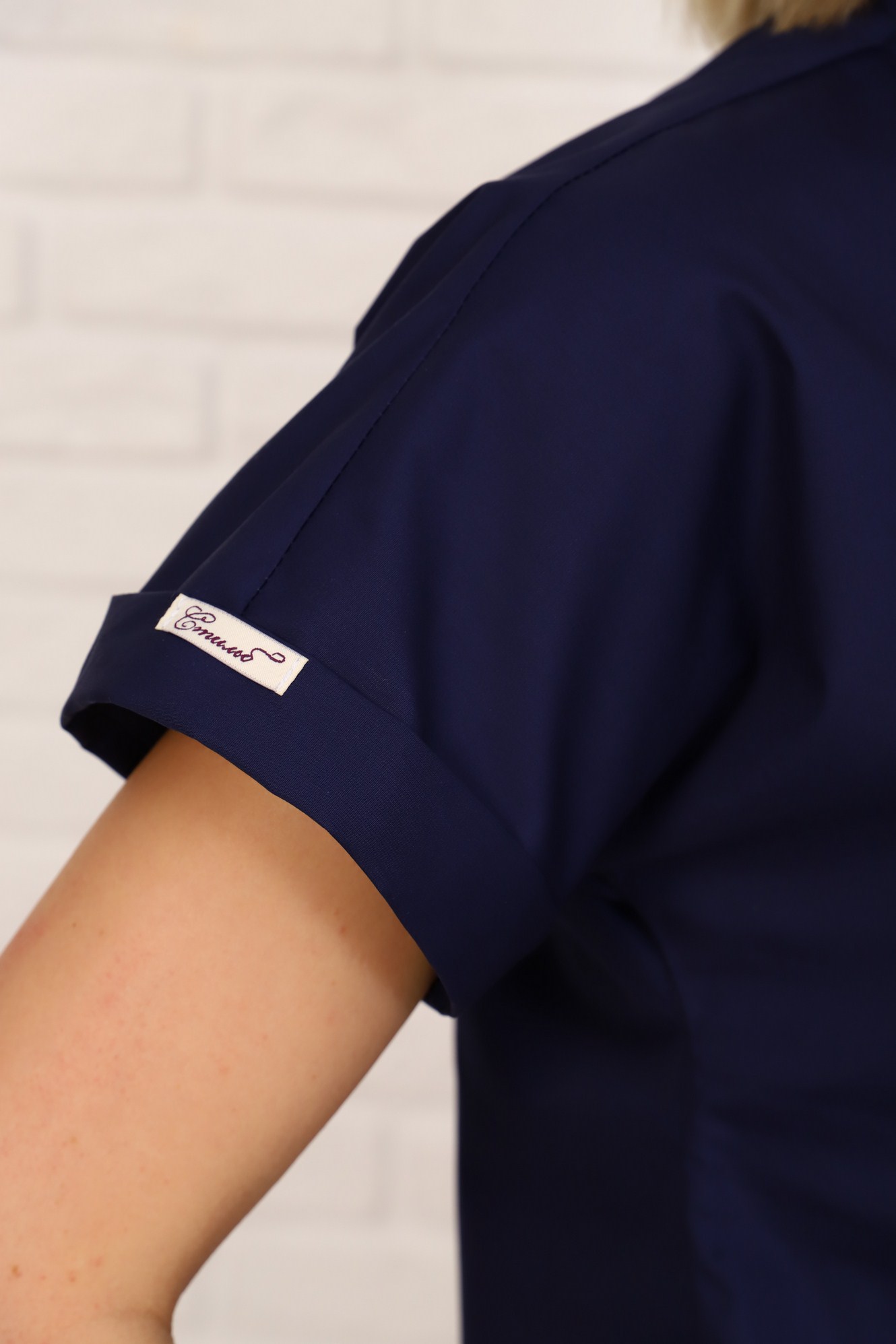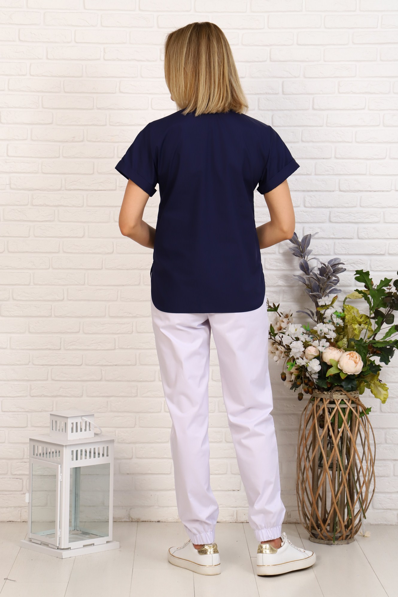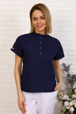 На полочках обработана застежка «поло», застегивающаяся на 4 рубашечных кнопки.