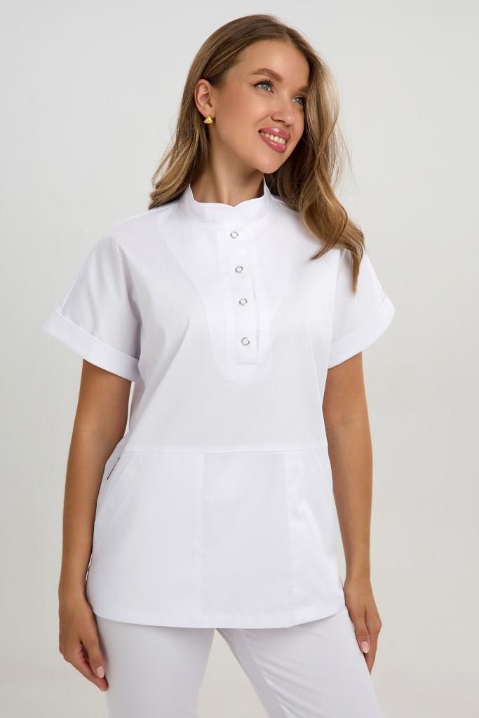 В боковых швах разрезы разной длины. Спинка цельнокроеная, длиннее полочки.